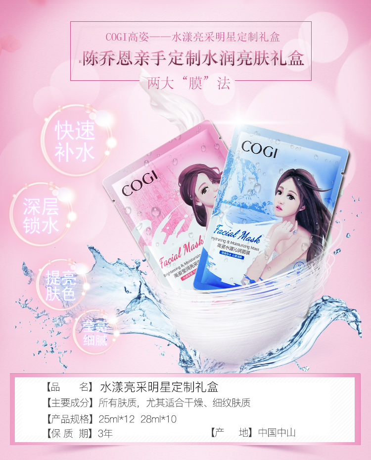 高姿COGI水漾亮采定制面膜礼盒(水漾25ml*12片+亮采28ml*10片)补水保湿粉色/定制礼盒随机