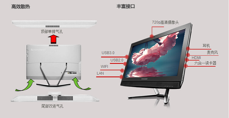 联想(Lenovo) IdeaCentre C560 23英寸一体机电脑(i3-4160T 4G 1T 2G独显 Rambo刻录 Wifi Win10)黑色 i5-7200u 8G 256SSD